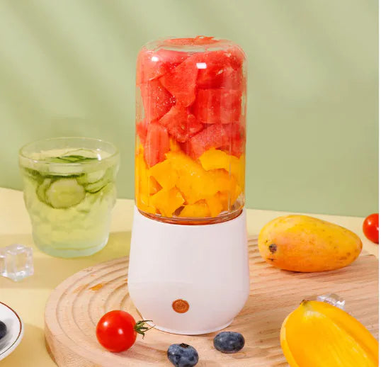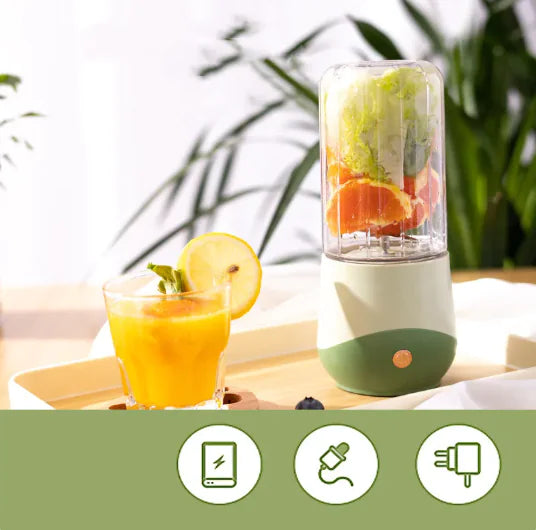 A compact and portable electric juicer that is wireless and rechargeable, making it easy to use on the go. Perfect for making fresh juices, smoothies, or shakes anywhere, this juicer is simple to operate and clean. Ideal for travel, office use, or outdoor activities, it ensures you can enjoy healthy drinks anytime, anywhere.